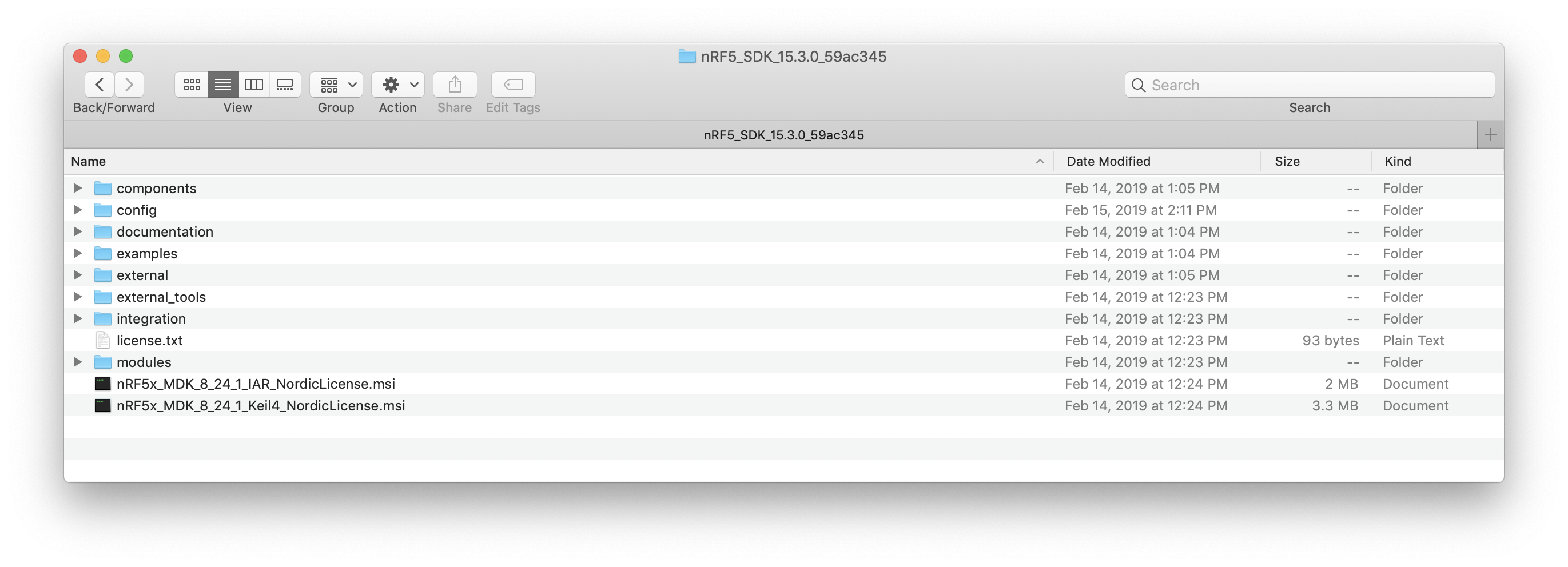 Installation of the nRF5 SDK is straightforward. All you need to do is download the SDK tarball from Nordic’s website and then extract it.